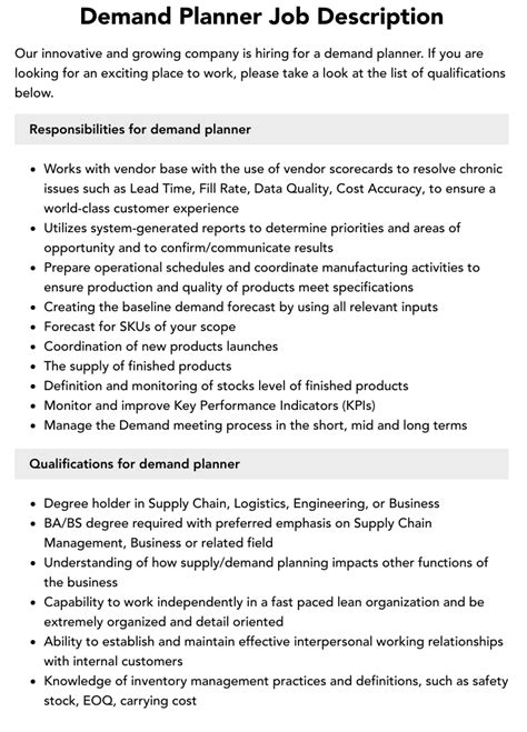 As businesses continue to grow and evolve, the need for effective demand planning has become more crucial than ever. This is where the role of a demand planner comes in. In this article, we will discuss the job description of a demand planner, the skills and qualifications required for the role, and the importance of this position in business operations.